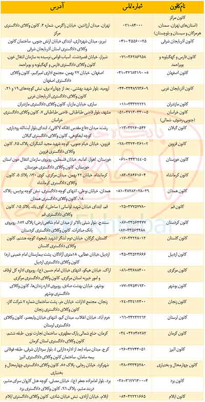 نشانی و شماره تماس کانونهای وکلای دادگستری سراسر کشور