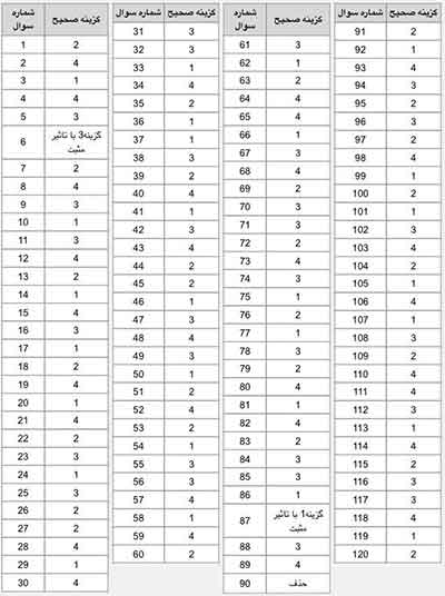 گزینه صحیح سؤال 6 و سؤال 87 آزمون با تأثیر مثبت اعلام شده است.